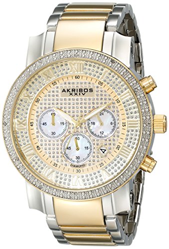 Best Seller! Akribos XXIV Men's Grandiose Diamond Quartz Watch with Gold Dial Chronograph Display and Gold Stainless Steel Bracelet AK439TT Review