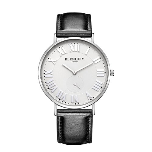 Best Seller! Blenheim London® Kensington Silver Case White Dial Watch with Black Leather Strap Review
