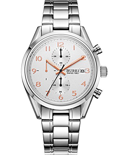 If you are looking for a product BUREI Men Chronograph Watch with Scratch-resistant Sapphire Crystal Lens Stainless Steel Bracelet then I will show you information and reviews about this product. BUREI Men Chronograph Watch with Scratch-resistant Sapphire Crystal Lens Stainless Steel Bracelet searched by people on the internet then not to run out of this stock. Make purchases with the click of a button 'Buy Now' if you really want to have this product. The following information and reviews about this product: