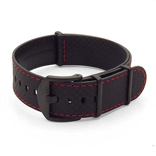 Best Seller! DASSARI Stealth Carbon Fiber NATO G10 Zulu Black w/ Red Stitching Leather Watch Strap w/ Black Hardware 20mm Review