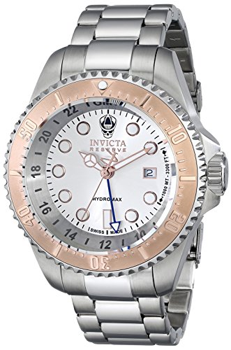 Invicta offer Invicta Men's Reserve Hydromax GMT Stainless Steel Silver Tone Dial Rose Tone Accents. This awesome product currently limited units, you can buy it now for £129.17, You save -