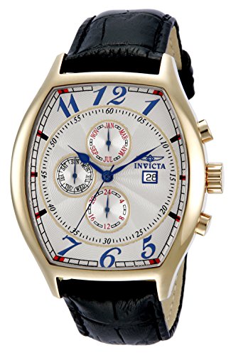 Best Seller! Invicta Specialty Men's Quartz Watch with White Dial Analogue Display and Black Leather Strap in Gold Plated Stainless Steel Case 14330 Review