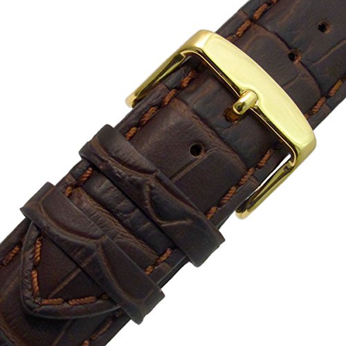 Best Seller! Super-Long XXL Padded Croc Grain Genuine Leather Watch Strap band 20mm Brown Gilt (Gold Colour) Buckle Review